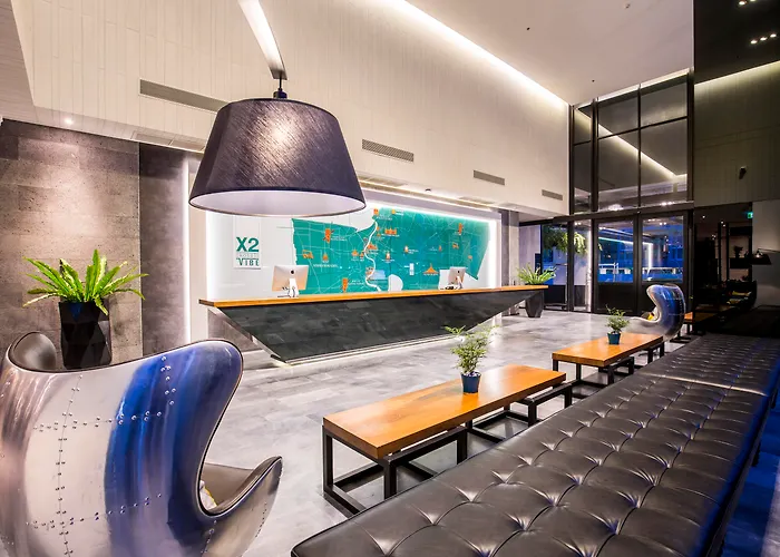 Cross Vibe Bangkok Sukhumvit - Formerly X2 Vibe Bangkok Sukhumvit - Sha Plus fica a 4 km de BITEC - Centro de Comércio Internacional e Exposições de Banguecoque e possui terraço ensolarado, salão compartilhado e espreguiçadeiras. Este hotel estiloso oferece uma acomodação com Wi-Fi nos quartos.